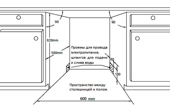 Norėdami savarankiškai sumontuoti mašiną virtuvės komplekte, jums reikia atskiros nišos šiame rinkinyje. Nišos matmenys turi atitikti indaplovės matmenis. Be to, neturėtų būti galinės sienelės ir dugno.
