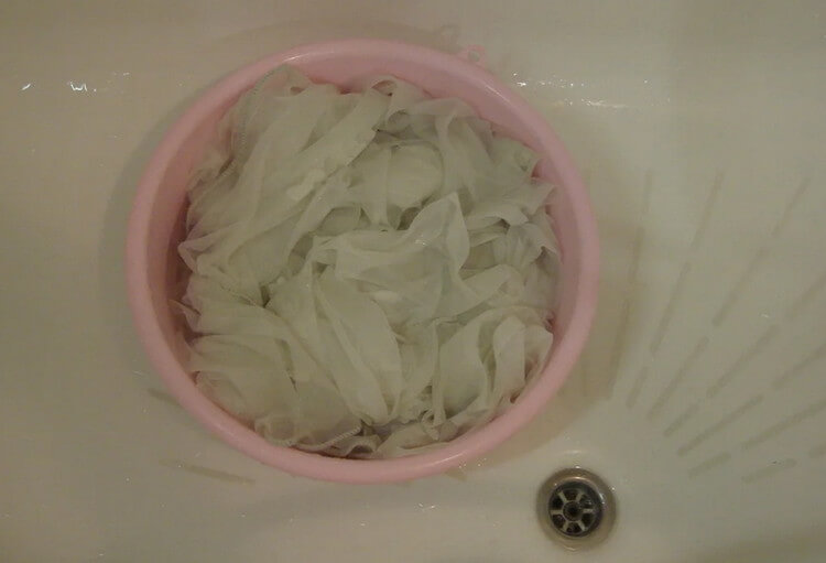 - Mirkykite tiulį 3-4 valandas. Jei labai suteptas, palikite audinį per naktį.