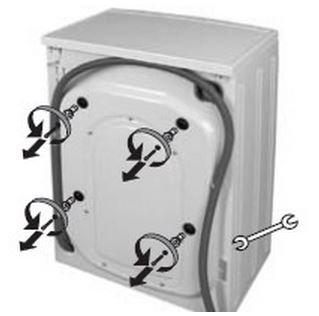 - Veļas mašīnas uzstādīšanas laikā neaizmirstiet atskrūvējiet transportēšanas skrūvesatrodas uz korpusa aizmugurējā vāka - tie ir atbildīgi par veļas mazgājamās mašīnas drošu transportēšanu, un darbības laikā tie ir jānoņem.